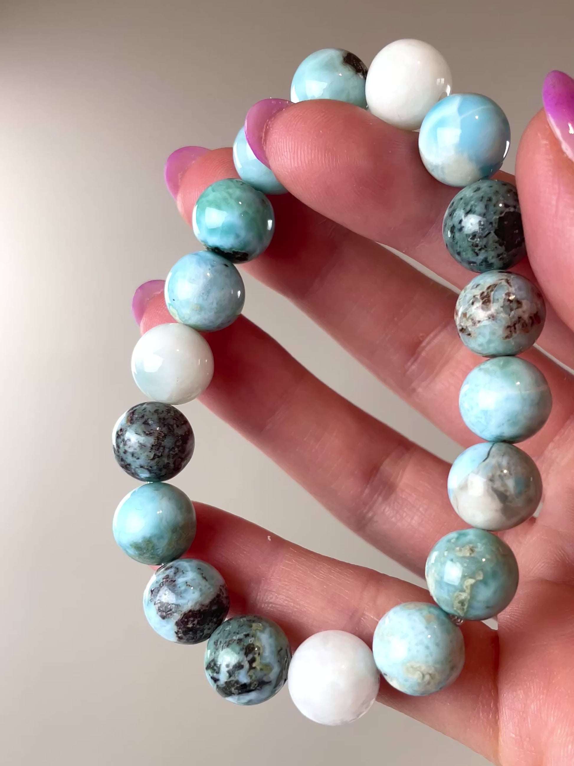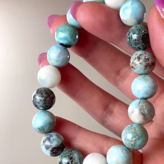 Bracelet Larimar (perles 10mm) | République Dominicaine.