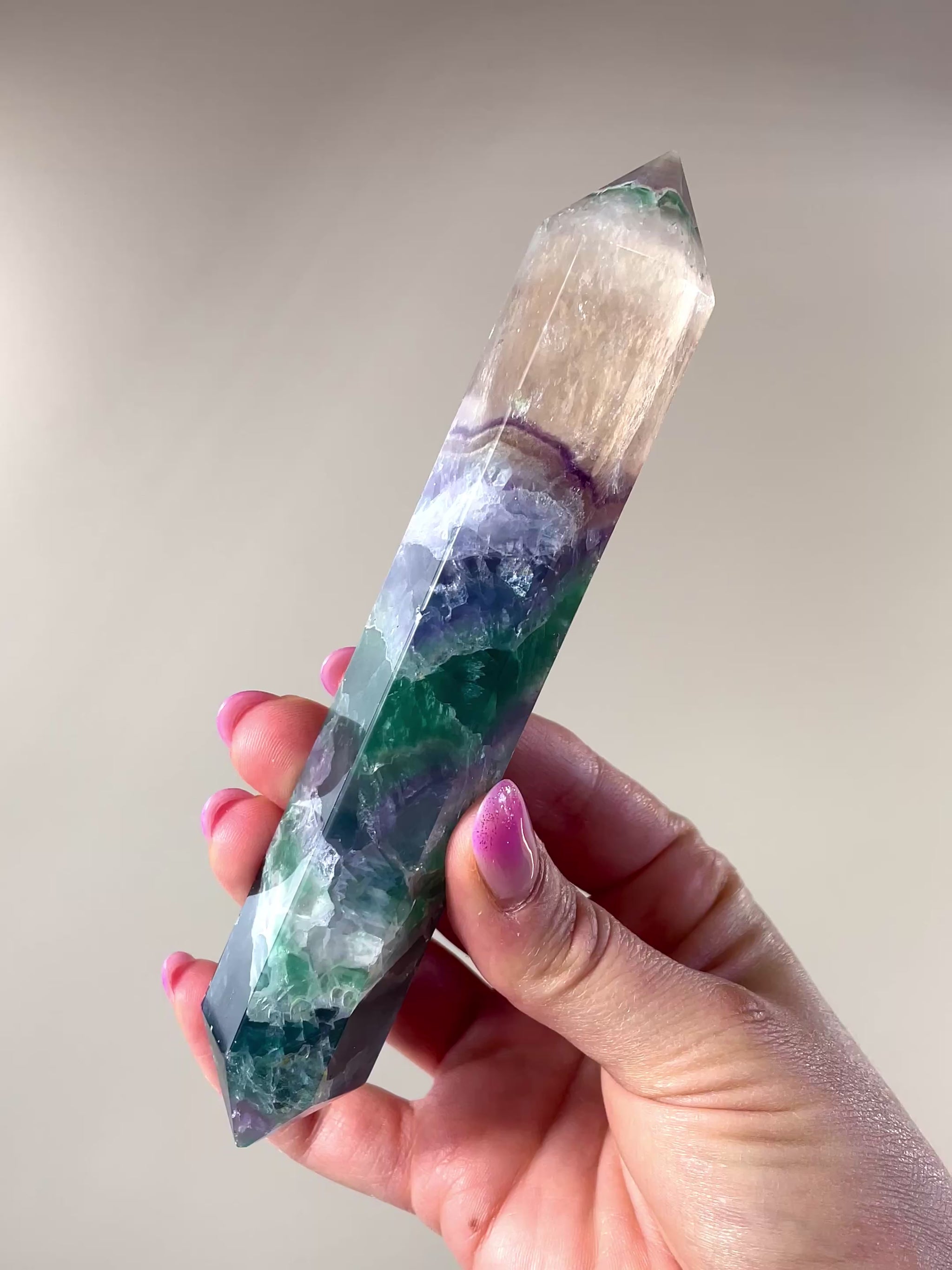 Pointe biterminée en Fluorite arc-en-ciel | Chine