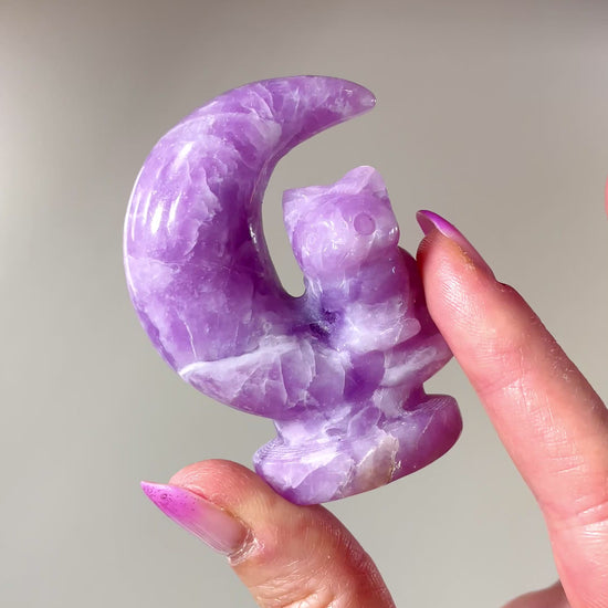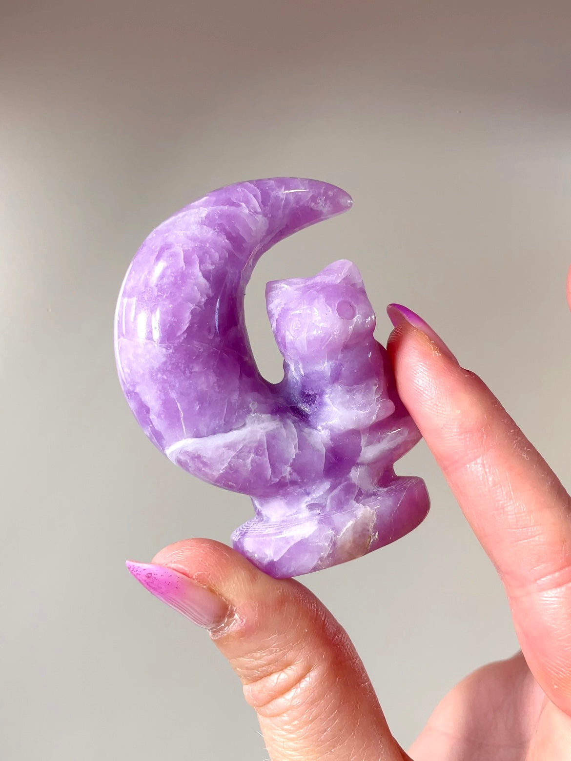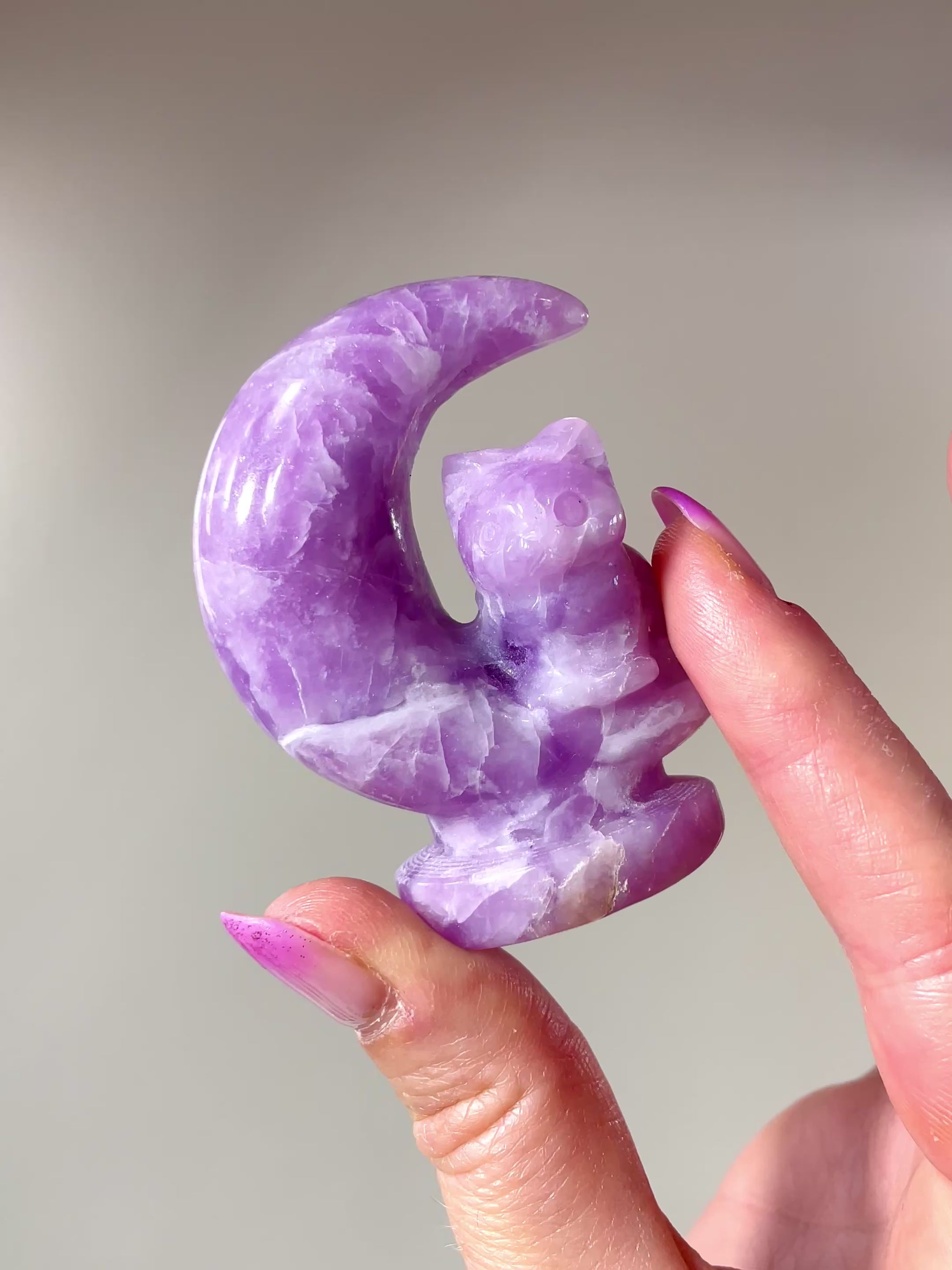Statuette Chat sur la Lune en Lépidolite | Brésil